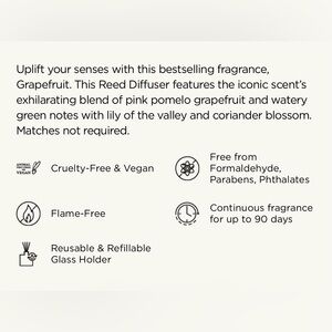 Elevate your home with the Grapefruit Reed Diffuser. This elegant diffuser features a refreshing grapefruit scent and a sleek black design. Perfect for adding a touch of luxury to any room.