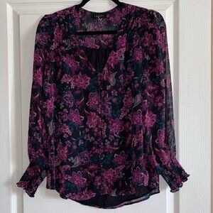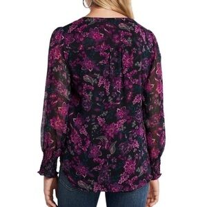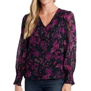NEW 1 State Nordstrom Romantic Blouse With Smocked Trim Floral Long Sleeves