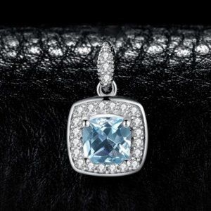 NEW 1.30 ctw Blue TOPAZ Cushion Silver Pendant