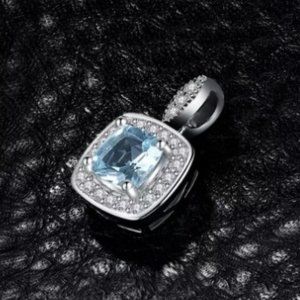 Pendant size: 15.0 x 11.0 mm. Blue topaz stone, size 6.25 mm x 6.25 mm