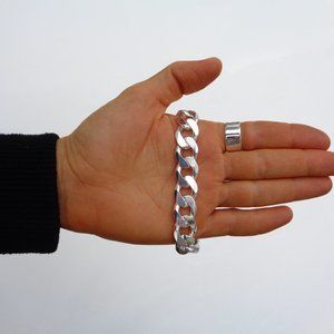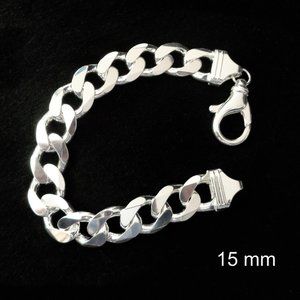 NEW 15mm SOLID 925 Sterling Silver Curb Bracelet Top Quality Made in ITALY 71 gr