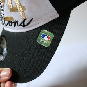NEW 2024 World Series Champions (LA) baseball hat/cap. Officially licensed on-field cap in black and white (100% cotton) with gold stitching. New era, one size fits most, 9 twenty style. Pre-owned but never used - ordered from Lids but still has tags, cardboard insert and stickers. Smoke-free, pet friendly home!