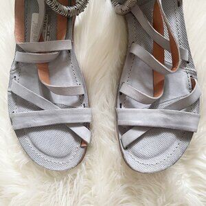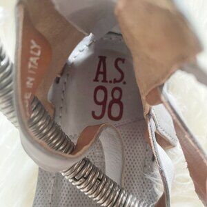 NEW $270 A.S. 98 Light Blue Gray Leather Metal Ankle Strap Strappy Sandals