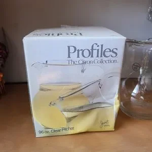 New and unused. Box has been opened and is damaged from being in storage. 2.8L/96oz capacity. Made in Turkey by Javit Crystal.