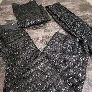 This has a sheer outer layer and a black slip linner. Skirt is just above the knee. You can wear with or without shirt and scarf. Tag is missing, it wad purchased at the Bay and never worn.