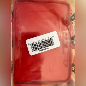 Comes with two dishes and two red lids. The lids are not Pyrex brand but a generic brand.