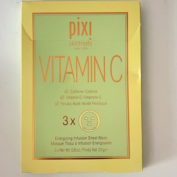 3 PIXI Energizing Infusion face sheet masks in a pack: with Caffeine, Vitamin C and Ferulic Acid