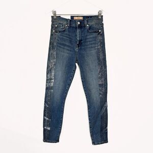 NEW 7 For All Mankind Bair High Waist Metallic Foil Stripe Ankle Skinny Jeans