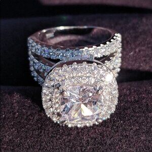 NEW 925 STERLING SILVER DIAMOND HALO RING, CUTE RING, SHINY RING.