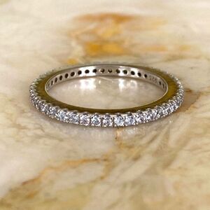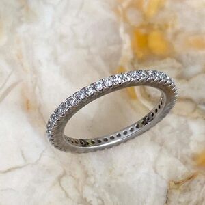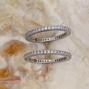 I have two identical size 9 brand new cubic zirconia full eternity bands in 925 sterling silver. This listing is for one, but you can purchase two for a stunning stacked look.