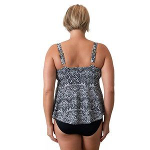 NEW A Shore Fit Women's Printed V-Hem Bandeau Swim Top Plus Size 16W D/E-Cup