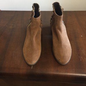 Alma en Pena Casual Ankle Boot, Lightweight, Size 39, Fit Size 8, Brown Suede, Lined, Back Color Beads, Brass Studs, Zipper on Both Sides, Small Heels, Missing a Stud, in Good Condition, Brand New, Great Look, Great Fit.