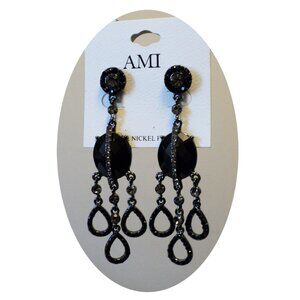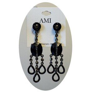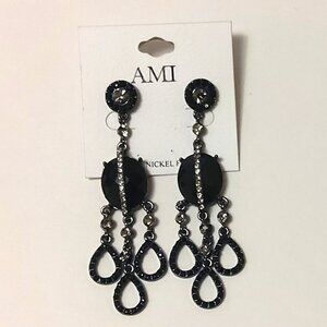 NEW AMI Black Onyx Long Drop Gray Crystal Dangle Earrings Women Jewelry Gifts
