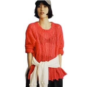 Edgy yet elegant, this Anthropologie Posey Stitchy Sweater (sold out and hard-to-find) is a true statement knit. Made in Italy, it features an intentionally distressed hemline, sheer open-stitch cable knit texture, and relaxed silhouette that layers beautifully. In a bold hot pink wool-blend, it balances vibrant colour with undone chic styling.