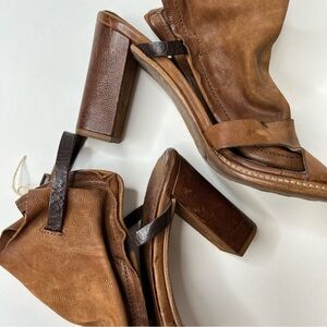 NEW A.S.98 Cognac Brown Distressed Leather Slouchy Strap Western Sandals Heels