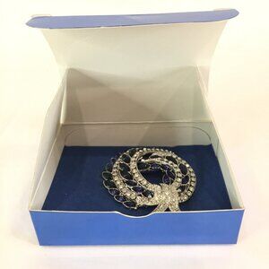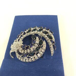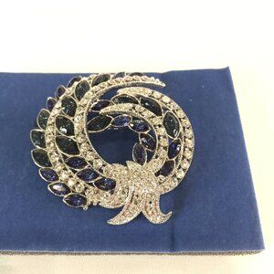 NEW AVON 120TH ANNIVERSARY BROOCH SAPPHIRE BLUE RHINESTONE SWIRL STATEMENT PIN