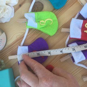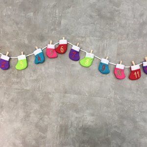 I think these are so awesome! I only have a few of them! This is a hanging garland of stocking advent calendar! It's super bright and colourful, and you can put whatever you like in them, from having a different treat, trinket or note each day, or just passing a token from 1 day to the next as you count down your days for Christmas! Each day stocking is numbered 1-24, leading up to Christmas. This is a re-useable item that will definitely put them in the Christmas spirit every year! Great Gift