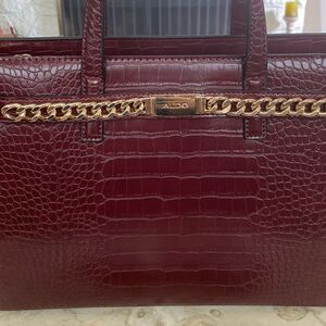 This elegant tote bag with chain detailing was made to elevate all your office looks and beyond. It’s brand new so in perfect condition and in an elegant deep burgundy red.