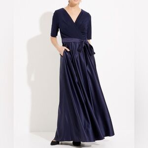 NEW Alex Evenings Wrap Front Satin Style A-Line Dress with Pockets