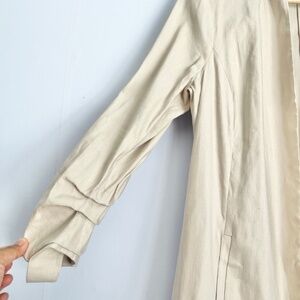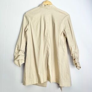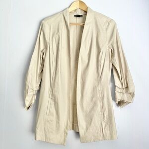 NEW Alfani Beige Ruched Sleeves Linen-blend Open Blazer US S