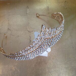 NEW Ambrosia Gold colored Tiara with silver clear rhinestones