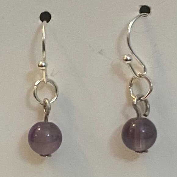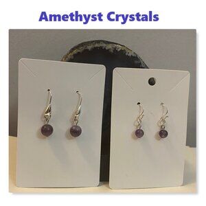 Beautiful Amethyst 6mm crystals are featured on these handcrafted one-of-a-kind earrings. Silver plated ear wires.