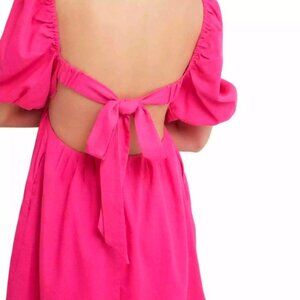 NEW Anthropologie O.P.T Cotton Blend Scalloped Open Back Dress Hot Pink, Size M
