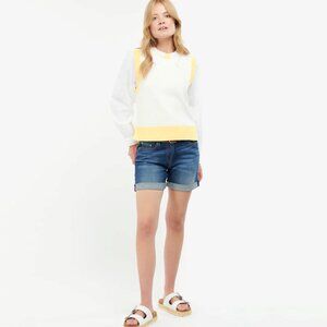 Presenting a modern style for her that can be worn alone or styled over a shirt, the Barbour Sweater Knit Vest is crafted from 100% cotton and offers a classic take on a new trend. It comes in white and boasts a contrasting butter yellow trim that adds just the right amount of interest.