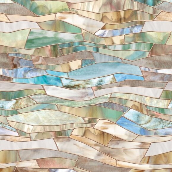ArtScape Terrazzo Window Film 61cm x 92 cm. Stain glass visual effects. This is a window covering that gives the visual effect of textured glass and stain glass. Creates privacy and provides UV protection. No adhesives, it applies easily. Patterns repeat to cover any size window. Made in the USA. Brand new, still sealed.