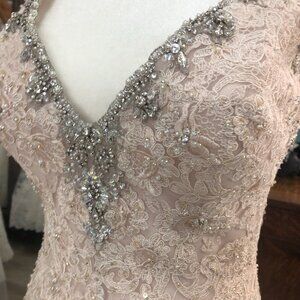 I LOVE the sparkle & lightness of this show-stopping once-in-a-lifetime gown! The LUXE fabric feels so light & the beading is AMAZING!! So sweet and youthful & just enchanting. GORGEOUS. AND THAT BACK THO!! Gorgeous Rosegold Champagne Colour!
