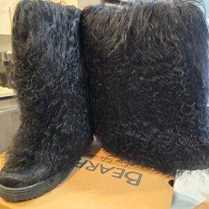NEW BEARPAW Boetis ll Black Real Lamb Fur Wool Lined Boots Womens Size 6 NIB