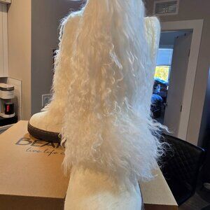 NEW BEARPAW Boetis ll Real White Lamb Fur Wool Lined Boots Womens Size 7 NIB