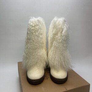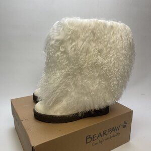 NEW BEARPAW Canada Boetis II Pearl White Mongolian Sheepskin Fur Boots Sz 7 US