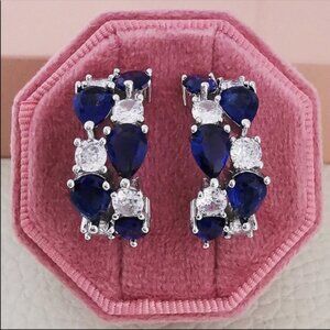 NEW BLUE 925 STERLING SILVER DIAMOND EARRINGS, NICE EARRINGS, CUTE EARRINGS