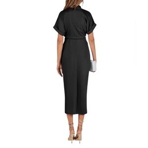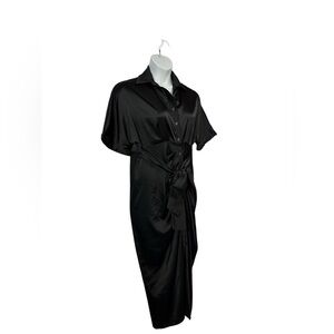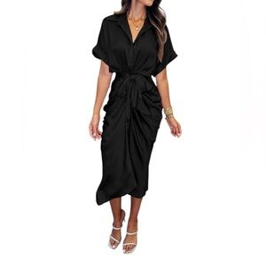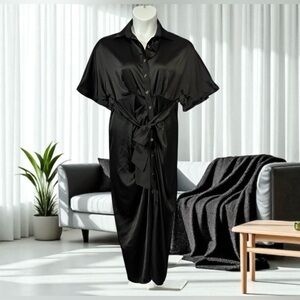 NEW / BTFBM (Amazon), Satin Ruched Shirt Dress, 2XL (Fits Smaller), Black