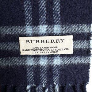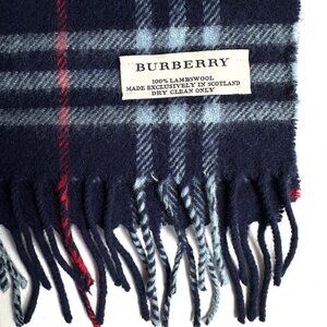 NEW - BURBERRY made in Scotland 100% Lambswool Paid Navy Scarf - UNISEX