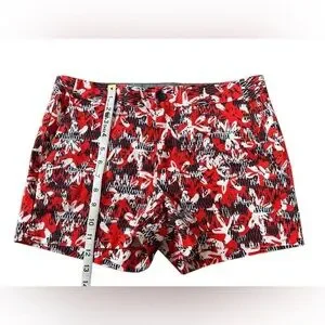 Add a vibrant touch to your wardrobe with these Banana Republic Hampton Fit shorts. Featuring a striking red, white, and black abstract pattern, these shorts are perfect for making a bold statement. The tailored fit and structured design ensure comfort and style, making them ideal for casual outings or summer events. Side pockets, zipper. New 🏷️ / 🚭
