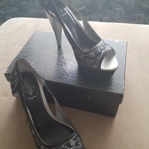NEW / BRAND NEW Baby Phat Women's Shoes Sz 8 Black Patent Platform Stiletto Heels Pumps Open Toe