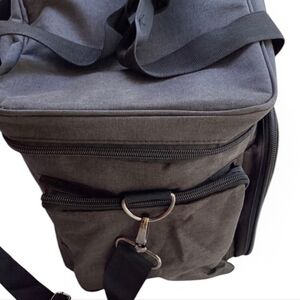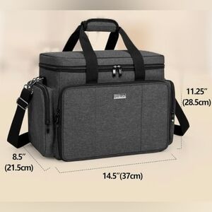 Easy to carry- comes with an adjustable shoulder strap and sturdy top handles for travel convenience. It also has a back strap to hold it on a suitcase. Bag size: 14.5" x 8.5" x 11.25".