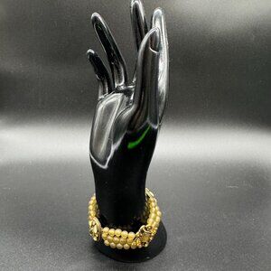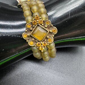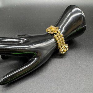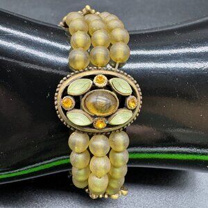 NEW Beaded Stretchy Bracelet Green Gold Tone by Acess-Mode with Tag