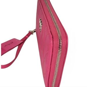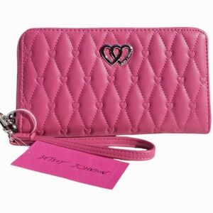 Brand new with tags Betsey Johnson Azalea Rosebud XO Quilted Heart Pink Wristlet/Wallet with Zip Around Closure.