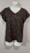 NEW, Bleu Gray, Black Floral Short Sleeve Button Top, Medium
