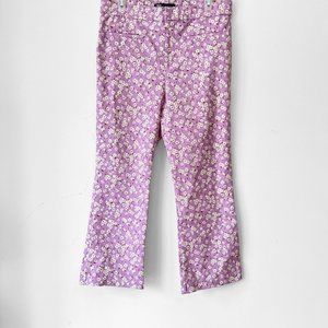 Beautiful floral print cropped flare pants. Lilac background with white daisy print.