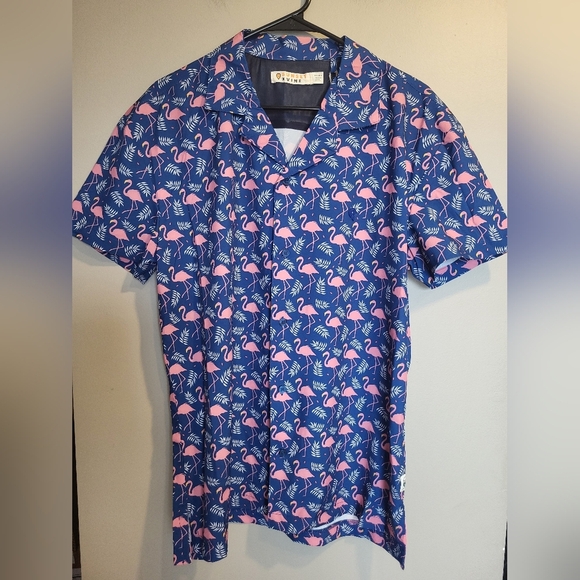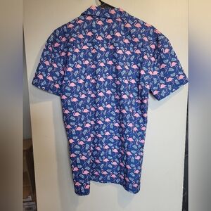 NEW Blue Flamingo Print Men Shirt, Size Medium