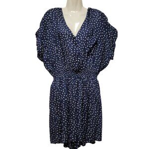 NEW Blue and White Polka Dot Rayon Romper Dress Size L Size XL - nwot