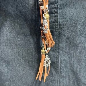 NEW Boho Suede Braided Tassel Belt in Camel color. Super cute braided faux suede chic wrap around & tie belt. Bohemian wood & rhinestone beads and charms at the end of tassels. Finish off your look with this festival style. One size fits most.