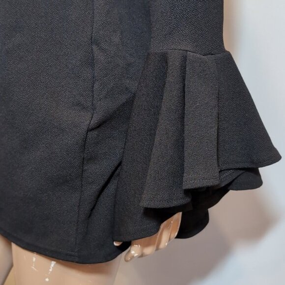 NEW Boohoo Margot Shift Dress Long Flute Sleeve Mock Neck Mini Keyhole Black