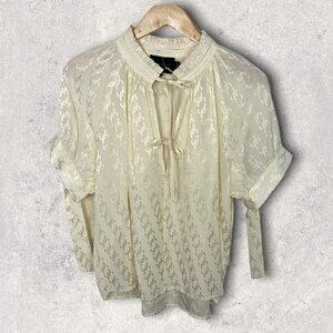 NEW Brigitte Herskind Tie Front Short Sleeve Blouse Jacquard Gajol Size 40 or 8