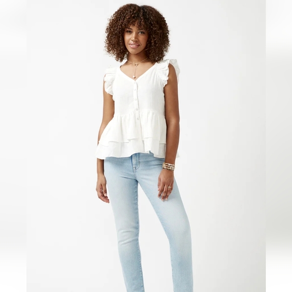 Brand new with tags. Beautiful frill buttoned blouse. Light, cotton fabric.