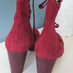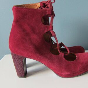 Anthropologie CHIE MIHARA JANET Burgundy Suede Laceup Open Boots/ Pumps.